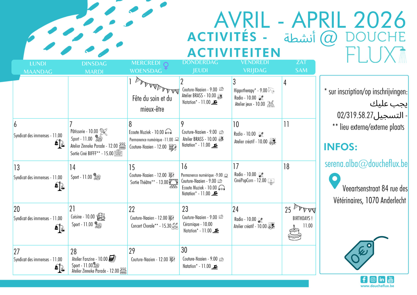 L’inconditionnalité, revendiquée par DoucheFLUX comme valeur essentielle de son action, se reflète au quotidien: activités gratuites, ouvertes à toutes et tous, pour la plupart sans inscription, …